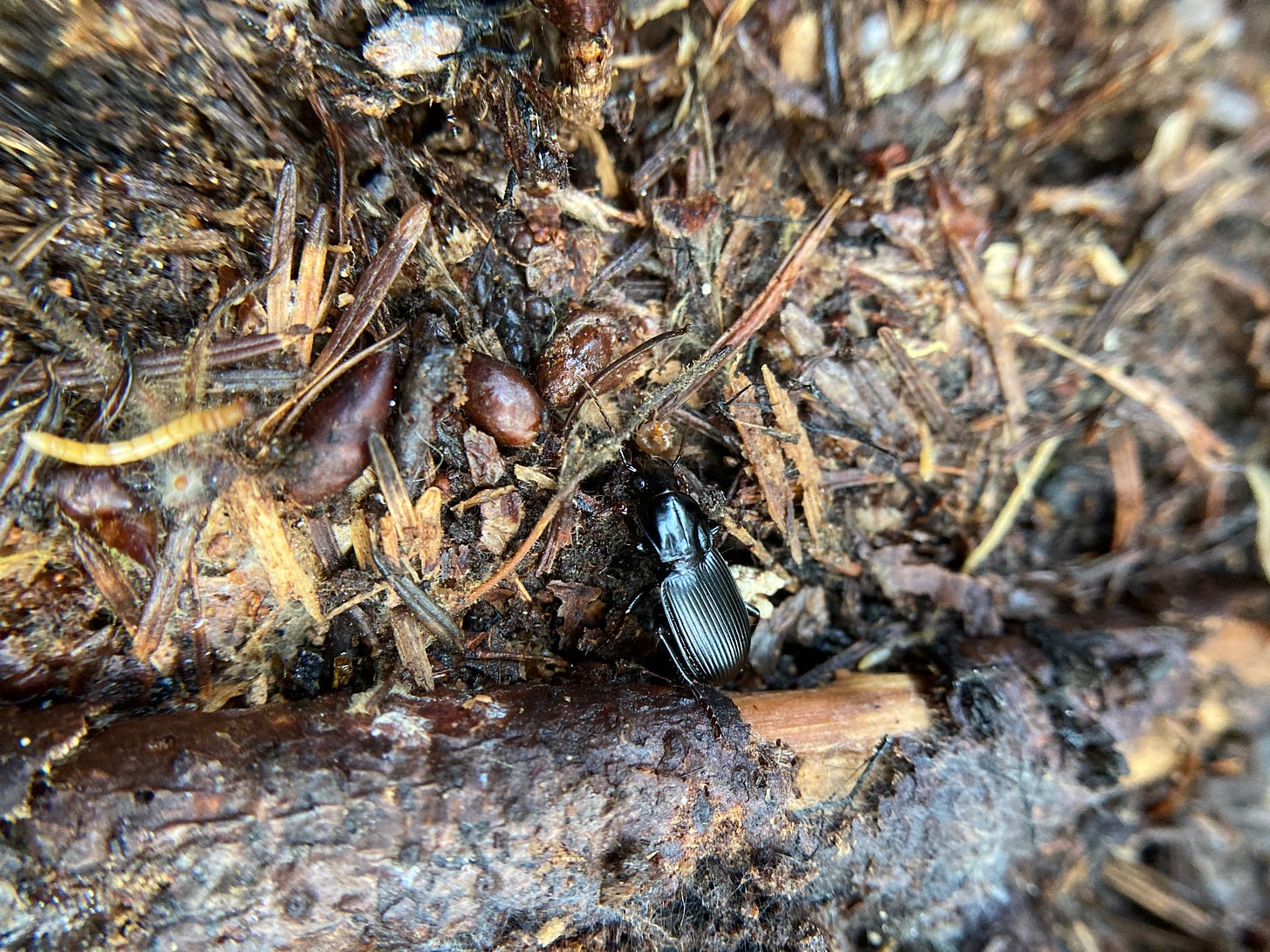 What he sees is something rather different than the average hiker’s perception of the same scene. The soil beneath a fallen log is not mere dirt- to the experienced eye, it is an alien landscape, an unexplored territory as mysterious as the surface of the moon. A fallen twig pressed into the soil creates an impression, in which hide mites and springtails, eyeless centipedes and predatory rove beetles. The tunnels carved out by worms become canyons through which stampede herds of tiny ants, on the sides of which miniature spiders have spun webs of finest silk. Fungal mycelia snake through the soil, providing food for beetles and millipedes.